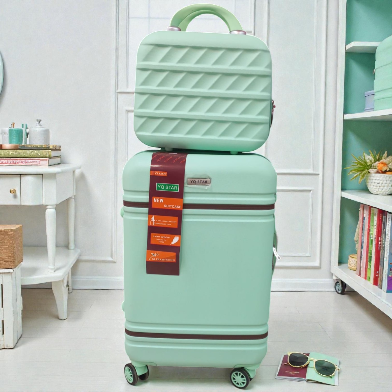 SET VALIJA + MALETIN VERDE AGUA